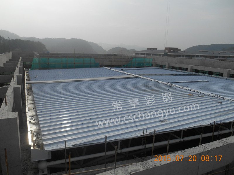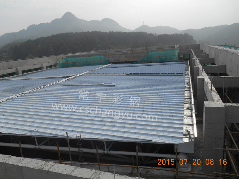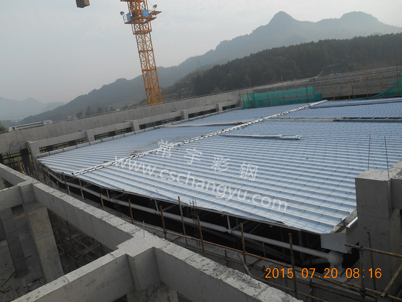 發布時間:2015-7-29來源:常宇彩鋼作者:常宇彩鋼瀏覽次數:(0) 1.0mm PVDF涂層直立鎖邊鋁鎂錳板應用案例 _遵義會堂鋼結構屋面